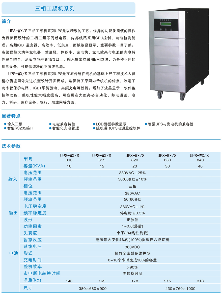 UPS-WX/S三相工频机系列